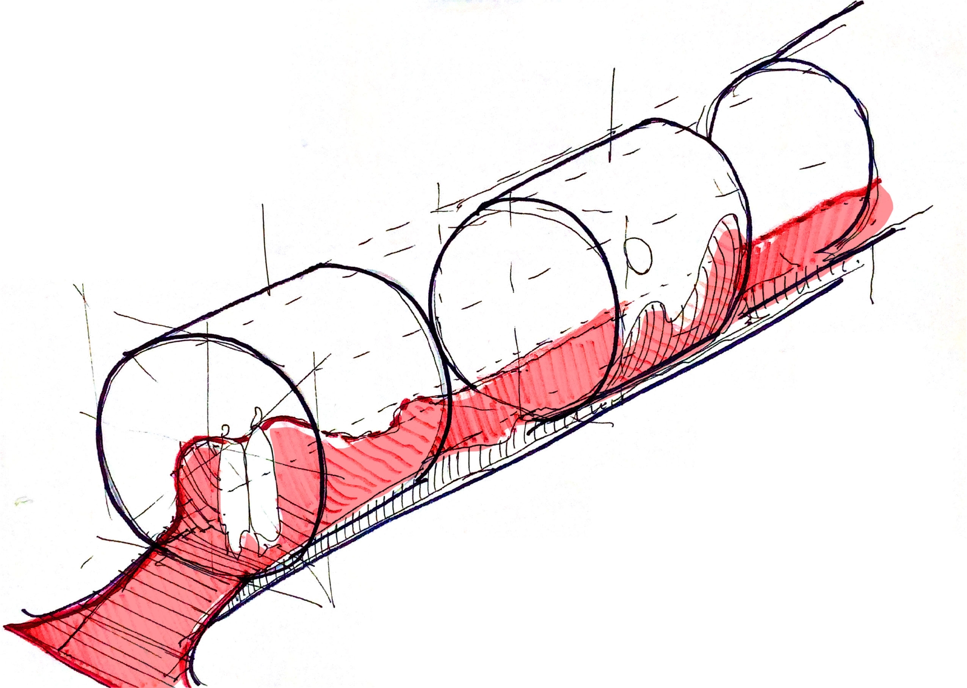 La struttura di House of Polpa, autoportante e a volta, si estende per oltre 25 metri e si articola in tre ampi volumi cilindrici, collegati da una passerella in legno rivestita con una resina di Mapei a base di scarti e bucce di pomodoro. Le ventimila lattine di Polpa Mutti sono i veri e propri mattoni che compongono l’architettura: uniti da piccoli elementi in acciaio, compongono un sistema costruttivo ideato per essere smontato con facilità. Ogni lattina, infatti, può essere rimossa senza compromettere la stabilità, trasformando l’architettura attraverso sottrazione.