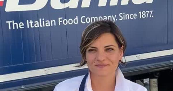 Una volontaria, a nome del nutrito gruppo di persone che lavorano alla cucina mobile Barilla esprime la propria soddisfazione di poter aiutare le persone vittima dell'alluvione in Romagna.