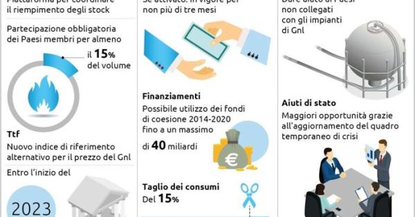 TAGLIO DEI CONSUMI - L'obiettivo già concordato nel piano RePowerEu del taglio del 15% del gas dovrebbe diventare obbligatorio tramite l'attivazione dello stato di allerta Ue, se le circostanze lo richiederanno. Non è escluso che il target venga rivisto al rialzo.
