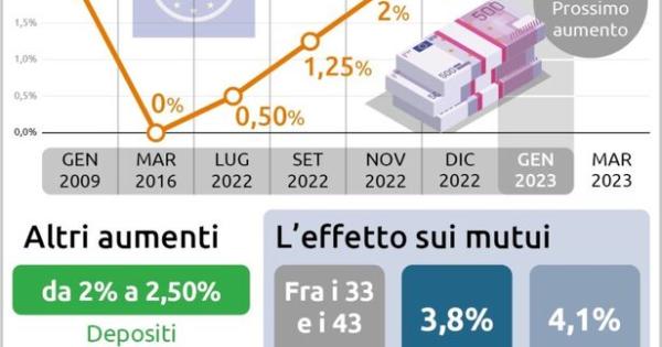Roma - La stretta sui tassi prosegue con passo determinato, come promesso, ma all'orizzonte i mercati vedono già il picco dei rialzi e festeggiano, anche grazie alla presidente della Bce Christine Lagarde che ha parzialmente corretto i toni duri di dicembre. Nonostante la Banca centrale europea abbia alzato il costo del denaro di altri 50 punti base, annunciando un ulteriore aumento della stessa entità a marzo, le borse europee chiudono in deciso rialzo, con Milano che registra il massimo da un anno (+1,49%). L'ottimismo si riflette anche sullo spread, che rallenta a 182, e sui rendimenti dei Btp che crollano di 40 punti base al 3,88%, il calo maggiore da marzo 2020. Magra consolazione, però, per chi ha un mutuo a tasso variabile o per chi vuole accenderne uno nuovo, anche a tasso fisso: la nuova rata salirà in media fra i 33 e i 43 euro rispetto al mese scorso.
