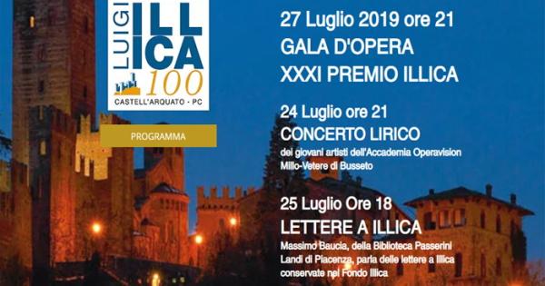 Sabato 27 luglio dalle ore 21 nella piazza monumentale di Castell'Arquato si celebrerà invece il centenario della morte di Luigi Illica con uno straordinario Gala d'Opera e l’assegnazione del XXXI Premio Luigi Illica a insigni personalità dell’opera e della cultura. Durante la serata, si alterneranno famosi nomi delle lirica e giovani professionisti che già vantano un traiettoria internazionale.