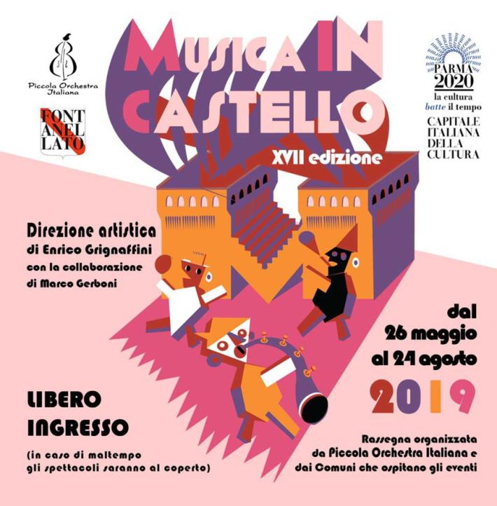 Artisti che lasciano il segno in una rassegna che sperimenta ed innova ogni anno, coraggiosa, solidale, per fare sognare e riflettere, dare speranza, diffondere musica di qualità, in 36 straordinari eventi in quattro regioni Emilia-Romagna, Toscana, Lombardia e per la prima volta Liguria, dal 26 maggio al 24 agosto agosto 2019 in rocche, manieri, antiche piazze di borghi storici, ville e corti rinascimentali: torna, in una ricchissima diciassettesima edizione, il cartellone culturale Musica in Castello e porta in pentagramma, in 26 Comuni, artisti imperdibili, spettacoli tutti ad ingresso libero, dalla grande classica alla danza, dal cabaret al cantautorato, dalla lirica ai libri, con una forte sessione molto jazz, swing, jump blues.