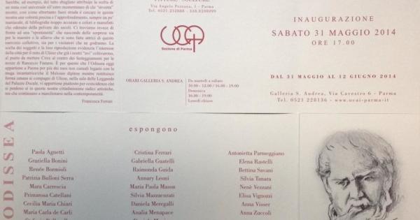 L'associazione UCAI sezione di Parma è lieta di presentare L'ODISSEA Collettiva della Scuola d'Arte Canforini INAUGURAZIONE SABATO 31 MAGGIO 2014 ALLE ORE 17.00 presso Galleria S. Andrea in via Cavestro 6, Parma Al di là della “forza narrativa” dell'Odissea, che con tutta probabilità continuerà ad affascinare anche nei secoli a venire, una delle riflessioni attorno alla mostra sul tema, ad opera delle allieve della Scuola d'Arte Canforini, è sul motivo che ha spinto l'insegnante a guardare ad un argomento di tale imponenza. Sarebbe, ad esempio, del tutto sbagliato attribuire la scelta di un tema così universale all'estro momentaneo di chi “inventa” mostre, così come altrettanto fuori strada è cercare in questa mostra una volontà precisa e l'approfondimento, sempre un po' maniacale, di bibliografie troppo accurate e colori e manufatti che odorano della polvere dei secoli. Ci troviamo invece di fronte ad una “spontaneità” che nasconde delle sorprese sia per le maestre e le allieve che si sono fatte attrici di questo esercizio collettivo, sia per i visitatori che ne godranno. La scelta dei soggetti e la loro riproduzione evidenzia l'interesse della città per il mito di Ulisse che già i nostri "avi" coltivarono, al punto da mettere Circe al centro dei festeggiamenti per le nozze di Ranuccio Farnese. E' per questo che l'Odissea oggi appartiene a Parma per più dei suoi non casuali legami con la maga incantatrice che il Malosso dipinse mentre restituisce forma umana ai compagni di Ulisse, nella sala delle Leggende del Palazzo Ducale, vi appartiene piuttosto per coincidenze che si perdono sì in queste nostre cittadinissime radici artistiche, ma che continuano a manifestarsi nella contemporaneità. Francesca Ferrari Aperta ad INGRESSO GRATUITO da sabato 31 maggio a giovedì 12 giugno 2014: da martedì a sabato 10-12 e 16-19 domenica 16-19 lunedì chiusura www.ucai-parma.it