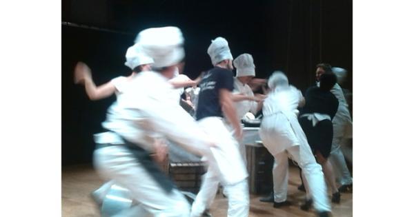 Così, il microcosmo claustrofobico ma autosufficiente della cucina riproduce dinamiche relazionali, situazioni di vita, frustrazioni e meccanismi di potere che regolano in generale la contemporaneità occidentale, corrompendo inevitabilmente quell’umanità che ognuno cerca di salvare come può. Il linguaggio quotidiano e il ritmo forsennato di questo testo ne fanno un esercizio perfetto per il gioco teatrale condotto da Gigi Tapella, dove la parola che si fa azione costringe a percorsi necessari e motivati, dove anche gli elementi surreali ed evocativi sono fortemente connotati sul tema.