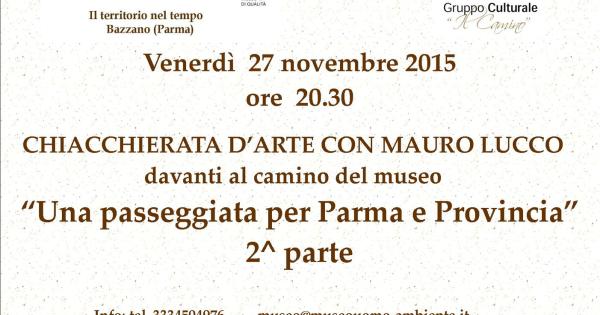 UNA PASSEGGIATA PER PARMA PER PROVINCIA Davanti al camino acceso del Museo Uomo Ambiente di Bazzano continua il viaggio tra pittori e dipinti del nostro territorio narrati dal prof. Mauro Lucco. Info: tel. 3334504976 museo@museouomo-ambiente.it
