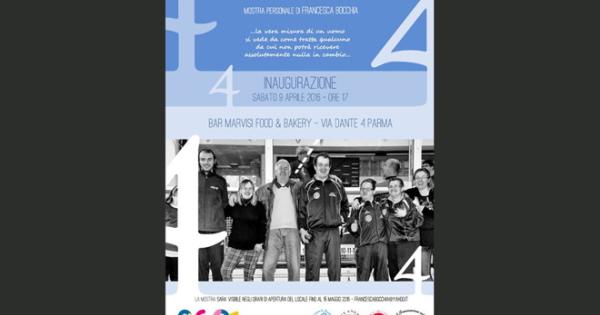 La mostra personale «Ci facciamo in 4» di Francesca Bocchia sarà inaugurata sabato 9 aprile, alle 17, circuito Off mostre Parma 360, al bar Marvisi food & bakery di via Dante 4 a Parma e sarà visibile negli orari di apertura del locale fino al prossimo 15 maggio.