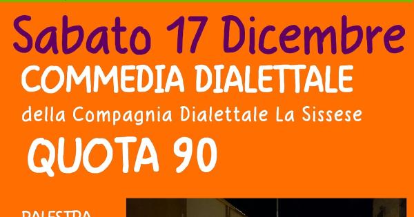 Una serata all'insegna dell'allegria con la compagnia dialettale "La Sissese", che presenterà "Quota 90", commedia in 3 Atti di Mauro Adorni. Ingresso € 6. Under 12 gratuito. Per dettagli e informazioni sono consultabili il sito www.prolocovarano.it e la pagina facebook della Proloco di Varano de'Melegari.