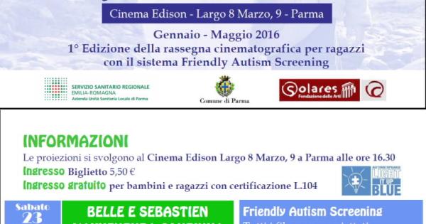 Audio leggermente più basso, luci soffuse in sala, una certa libertà di movimento durante la proiezione e la possibilità di portare cibo da casa: sono queste le caratteristiche della rassegna cinematografica "Schermo in blu", organizzata dal settore Welfare del Comune di Parma, il Centro per l’Autismo della AUSL di Parma e Solares Fondazione delle Arti, che si svolgerà al Cinema Edison (largo 8 Marzo 9).