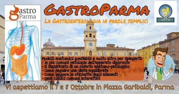 GastroParma, la "Gastroenterologia in parole semplici" è un evento di promozione della salute durante il quale il Dipartimento di Medicina e Chirurgia dell'Azienda ospedaliero-universitaria scende in piazza Garibaldi, spiegando in modo creativo e divertente la gastroenterologia.