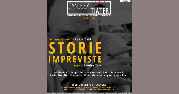 Domenica 11 giugno alle 21,30, al teatro “Matilde di Canossa” di Ciano d’Enza (Reggio Emilia) debutta Canossa T.I.A.T.E.R., un nuovo gruppo teatrale nato da un’esperienza di laboratorio. Lo spettacolo di debutto è Storie Impreviste, liberamente tratto da Roald Dahl.