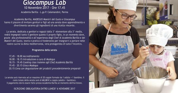 Venerdì 10 novembre Academia Barilla ed i Maestri del Gusto proporranno un laboratorio esperienziale di cucina ed educazione alimentare dedicato a grandi e piccini: una serata divertente durante la quale teoria e pratica si fonderanno per insegnarvi ad applicare i princìpi della Dieta Mediterranea alle vostre cucine. I Maestri del Gusto, secondo il modello Giocampus, vi insegneranno attraverso giochi ludico-didattici le nozioni su cui si fonda la Dieta Mediterranea, mentre gli chef di Academia Barilla vi guideranno nella realizzazione di gustose ricette in linea con tale modello alimentare. È questa la proposta che Academia Barilla, con la collaborazione dei propri chef e dei Maestri del Gusto, ha costruito per approfondire i temi dell’alimentazione in una serata all’insegna del divertimento.