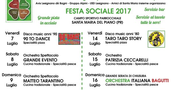 L'associazione di volontariato "Il Quadrifoglio" organizza al campo sportivo di Santa Maria del Piano (Lesignano Bagni) 6 serate all'insegna della musica e della buona cucina. Il programma: