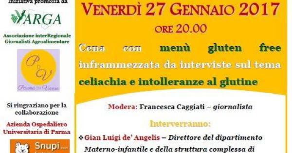 Tra una portata e l’altra interverranno il prof. Gian Luigi de’ Angelis, Direttore del dipartimento Materno-infantile e della struttura complessa di Gastroenterologia ed Endoscopia digestiva dell’Azienda Ospedaliero Universitaria di Parma e Ilaria Bertinelli, autrice del libro “Uno Chef per Gaia”, una raccolta di consigli e ricette per celiaci e diabetici. Ad intervistare i relatori sarà la giornalista ARGA e ideatrice del format Francesca Caggiati, che porrà loro domande finalizzate ad approfondire dal punto di vista medico e nutrizionale una tematica particolarmente attuale e sentita. Dopo il flan di Parmigiano con salsa al radicchio rosso verranno servite le lasagnette gratinate ai carciofi, le tagliatelle di pasta fresca al ragout di cinghiale e la Duchessa di Parma farcita al profumo di salvia. Il tutto accompagnato da verdure e patate al forno. Dulcis in fundo il tortino al cioccolato fondente con crema alla vaniglia, seguito da un buon caffè. Dalla cantina: acqua naturale e frizzante, vino bianco e rosso in abbinamento.