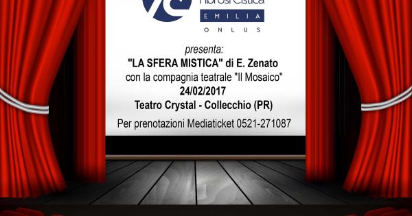 La Lega Italiana Fibrosi cistica invita tutti alla rappresentazione teatrale "LA SFERA MISTICA" di E. Zenato con la compagnia teatrale "il mosaico", in collaborazione con l’Associazione Lifc Emilia. Lo spettacolo si terrà a Collecchio, sabato 24 febbraio 2018 al Teatro Crystal, via Galaverna, 26. Parte del ricavato sarà devoluto in favore dei malati di Fibrosi Cistica. Una commedia brillante e divertente, dove i due protagonisti Ruth e Carlo invitano il medium Mister Arcati a tenere una seduta spiritica a casa loro per prendere spunti necessari alla scrittura di un romanzo. Il gioco avrà conseguenze inaspettate che si faranno vedere e sentire… portando a un finale pieno di colpi di scena, sedute spiritiche, tentati omicidi, apparizioni strane, presenze e fluidi distruttori. Sono previsti due spettacoli uno pomeridiano e uno serale. I biglietti sono già disponibili in prevendita attraverso Media Ticket Srl.. spettacolo pomeridiano ore 16,00 € 15,00 ridotto € 20,00 intero spettacolo serale ore 21,00 € 25,00 seconde file € 30,00 prime file Per info e prenotazioni rivolgersi a Donatella: chiamando al 0521-271087