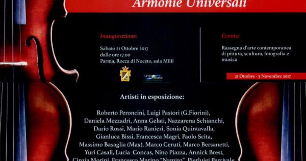 Inaugurazione sabato 21 ottobre alle 17, alla Rocca di Noceto, sala Milli, della r assegna d'arte contemporanea di pittura, scultura, fotografia e musica che resterà aperta fino al 5 novembre. Artisti in esposizione: Roberto Peroncini, Luigi Pastori (G. Fiorini), Daniela Mezzadri, Anna Gelati, Nazzarena Schianchi, Dario Rossi, Mario Ranieri, Sonia Quintavalla, Gianluca Bissi, Francesca Magri, Paolo Scita, Massimo Basaglia (MAx), Marco Ceruti, Marco Bersanetti, Yuri Casali, Lucia Concas, Nino Piazza, Annick Brest, Cinzia Morini, Francesco Marino "Namiro", Pierluigi Percivale, Mirella Lanfranchi, Aureliano Lanzoni, Paolo Elgorni Basevi, Enrico Rignetti, Maria Grazia Passini, Gianni Mantovani, Maria Carmen Nuzzo.