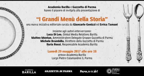 la nuova iniziativa editoriale curata da Giancarlo Gonizzi ed Errica Tamani e dedicata alla collezione di menù storici di Academia Barilla, composta da oltre oltre 5.000 esemplari.