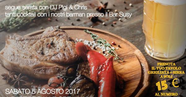 Serata con grigliata e cocktail al Bar Susy.Segue serata con DJ Pigi & Chris
