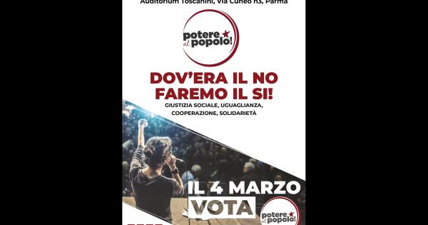 Dopo la raccolta di firme, mercoledì 31 gennaio alle 21.00 all’Auditorium Toscanini (a Parma, via Cuneo n.3) Potere al Popolpo si presenterà alla città. "Sarà l'occasione - si legge in una nota - per approfondire il programma, per indicare esigenze, per proporre nuove soluzioni e anche per conoscere i candidati di Parma della lista: Nicoletta Ariosi, Margherita Becchetti, Andrea Bui, Stefano Carosino ed Emilio Rossi."