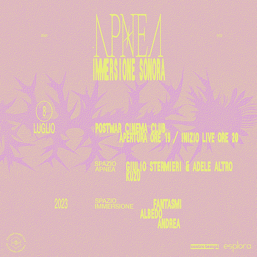 Continua la programmazione della rassegna musicale più longeva delle estati parmigiane e sabato 8 luglio al Postwar Cinema Club di Strada Vallazza, 36 (zona Roncopascolo/Fiere di Parma) Controtempi – Itinerari Sonori con Time diventa il festival della musica immersiva APNEA. Progetto ideato da Emanuele Santona, che insieme a Matteo Tonelli e Alberto Manco si sono occupati rispettivamente della direzione artistica e della comunicazione digitale. A questa seconda edizione si è aggiunta al team anche Chiara Gianello come management e relazioni esterne. Con apertura porte alle 18.00, dalle 19.00 si esibiranno su due palchi cinque artisti con una selezione di progetti tra i più interessanti della nuova scena italiana di musica indipendente. Ad aprire la serata dello Spazio Immersione tre gruppi locali: Fantasmi, Albedo e Andrea, destinati a far parlare di sé, ma con il bisogno del giusto spazio per emergere. A seguire sul main stage dello Spazio Apnea, Kuzu, il fondatore del collettivo italiano di musica d’avanguardia “Pseudospettri”, che spazia dall’elettronica sperimentale all’Indie, con la caratteristica principale dell’introspezione: la sua musica infatti si mescola con concetti filosofici e artistici. Per la sua esibizione dal vivo i brani sono stati riadattati con il violinista Namuri in una chiave ambient con varie sfumature classiche. Concluderà l’evento Giulio Stermieri Yabai & Adele Altro, dalla cui collaborazione è nato il loro primo disco “Up for grabs”, prodotto e pubblicato da All Rights Riserva Records nel 2022. Giulio Stermieri è uno dei musicisti in vista della scena jazz contemporanea italiana che, nel corso degli anni, tra le molteplici iniziative musicali, porta avanti questa con Yabai Quartet e Adele Altro come voce: la formazione, dunque, diventa un quintetto composto da voce, sax tenore, rhodes, contrabbasso e batteria. Con le sonorità classiche, l’impostazione contemporanea e qualche elemento elettronico in più, riescono a spaziare tra melodie pop e influenze post-punk. “CONTROTEMPI – Itinerari Sonori” è organizzata da Esplora Aps con il contributo del Comune di Parma e Fondazione Cariparma e il sostegno di Chiesi, Koppel AW e Sama Abitare. Ingresso 5€ con tessera Arci. Ulteriori informazioni sono disponibili sulla pagina Fb ControtempiItinerariSonori e sull’evento bit.ly/439hs91