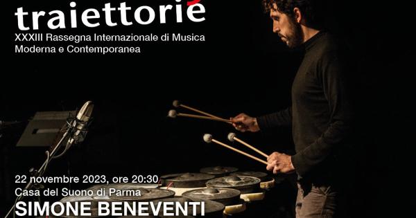A Traiettorie 2023 è arrivato il momento del concerto per percussioni, un appuntamento ormai consueto nelle ultime edizioni della rassegna, che ha come fulcro la figura di Simone Beneventi, percussionista e performer della musica del XX e XXI secolo, Leone d’argento alla Biennale Musica di Venezia 2010 per il progetto «Repertorio zero», uno dei più attivi e appassionati ricercatori del suono contemporaneo, anche attraverso la progettazione di nuovi strumenti e di nuove soluzioni compositive per percussioni, che l’hanno portato a collaborare con importanti compositori d’avanguardia, ensemble europei e numerosi artisti. Mercoledì 22 novembre, giorno di Santa Cecilia patrona della musica, Beneventi sarà a Parma, alla Casa del Suono, alle ore 20:30, con Massimo Marchi al live electronics e due grandi pezzi che giocano proprio sulla sperimentazione strumentale.