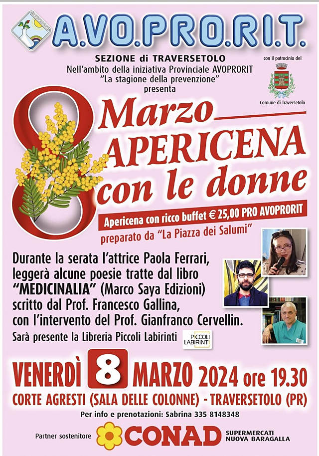 Venerdì 8 Marzo ore 19.30 presso Corte Agresti Traversetolo