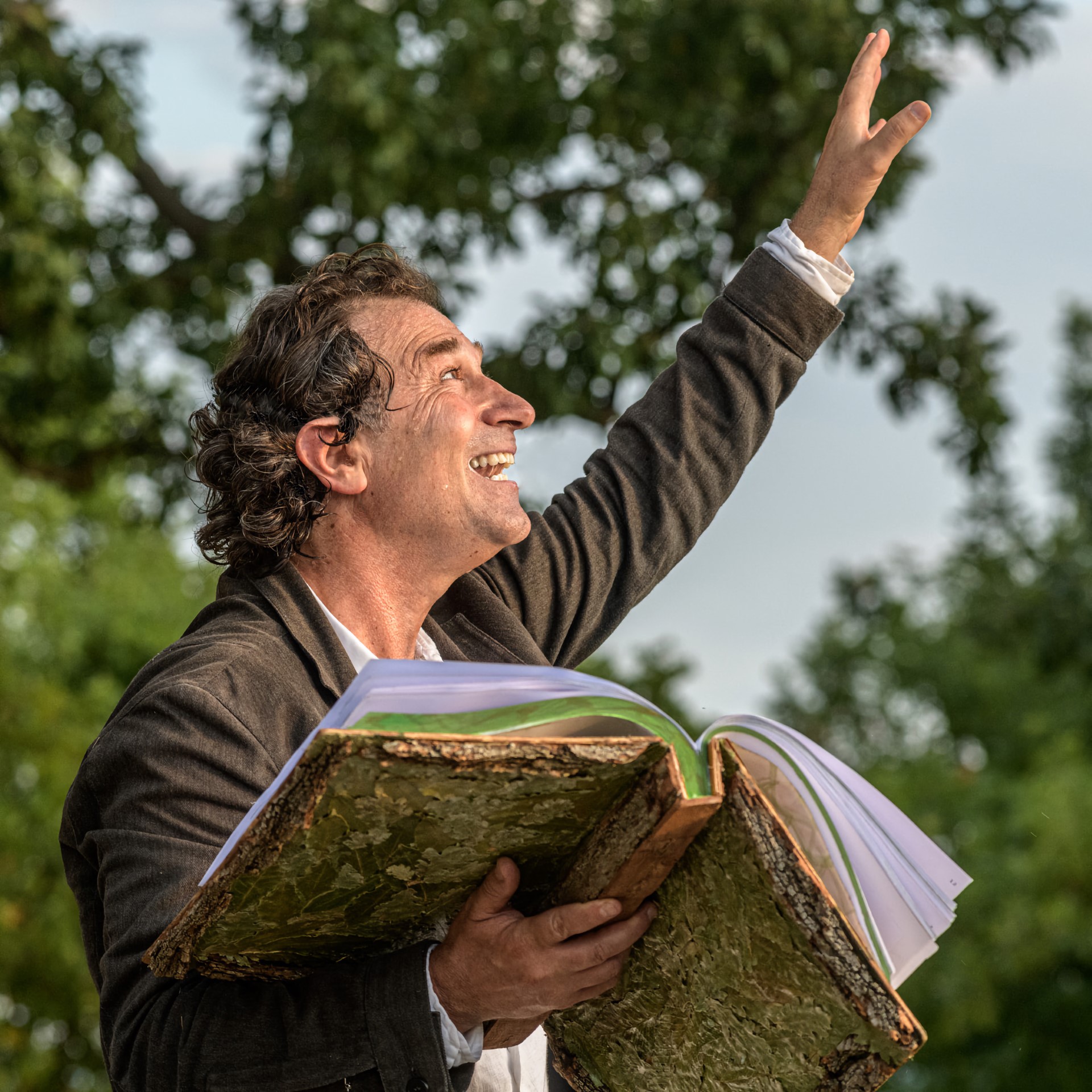 Attore e regista romano, insegnante Linklater per liberare la voce naturale. Trasferitosi in Appenino, ha dato vita a un teatro in cammino a cielo aperto, sull’onda del successo del Cammino del Perdono, partito dal Castello di Canossa (2010-2018). Più di recente, dal 2021 è autore, regista e interprete del progetto Alberi in Cammino – percorsi di teatro e danza sotto gli alberi secolari dell’Appennino Emiliano in collaborazione con Associazione dei Comuni Virtuosi e TurboLenta.