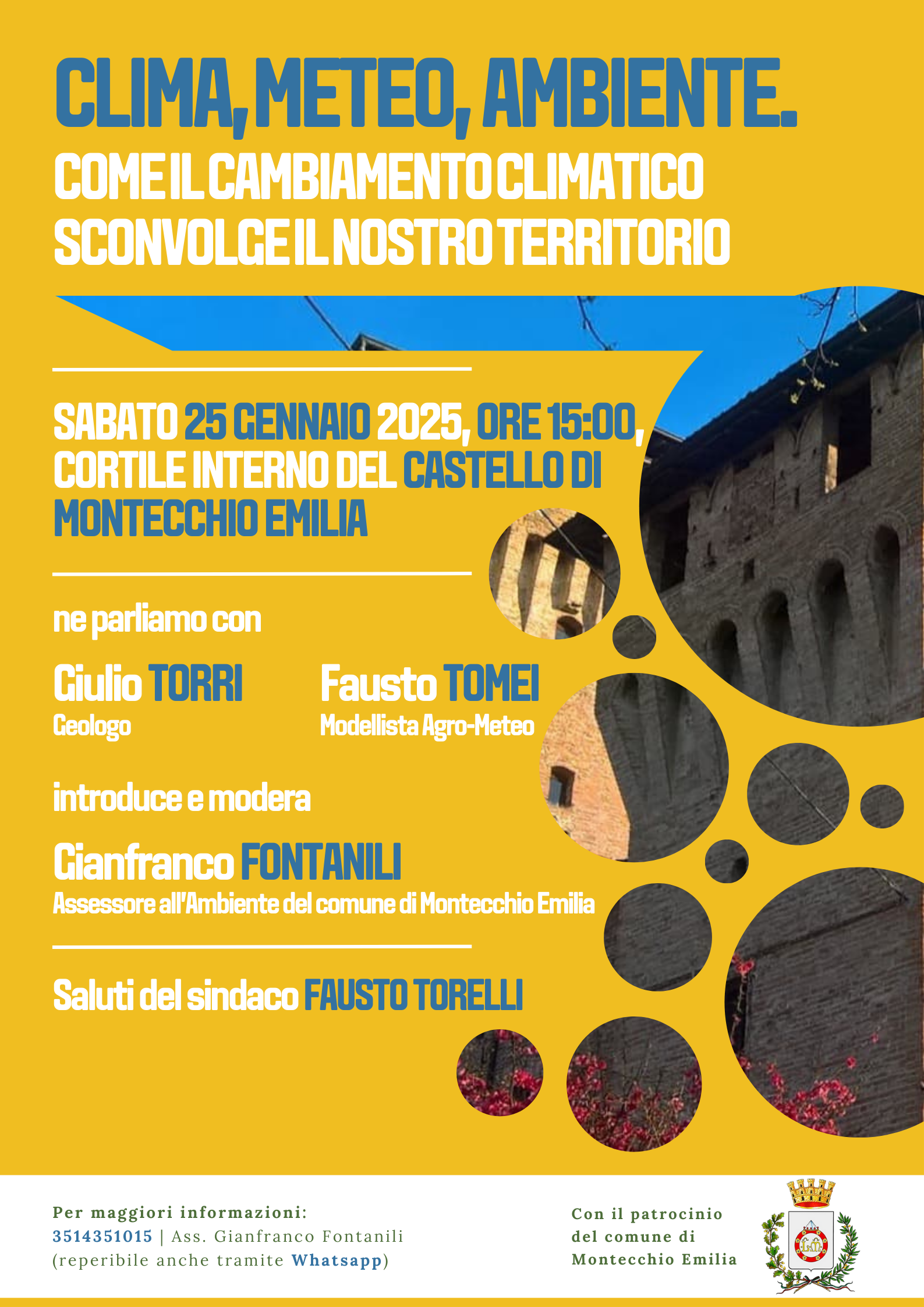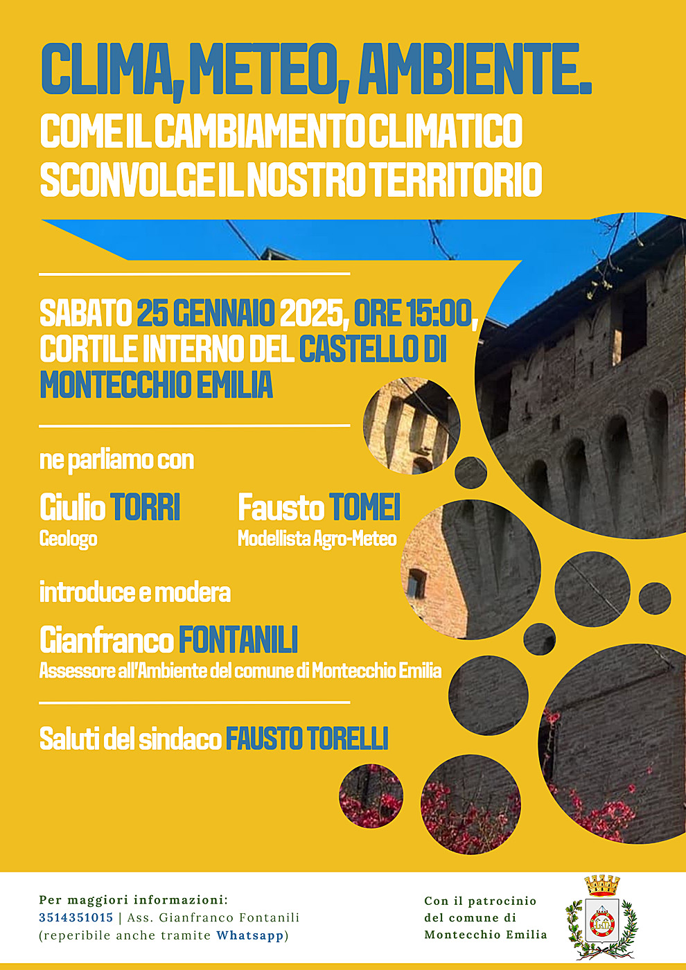 Il cortile interno del Castello di Montecchio Emilia ospiterà un evento sul cambiamento climatico, con la partecipazione di due eminenti esperti: Giulio Torri e Fausto Tomei.