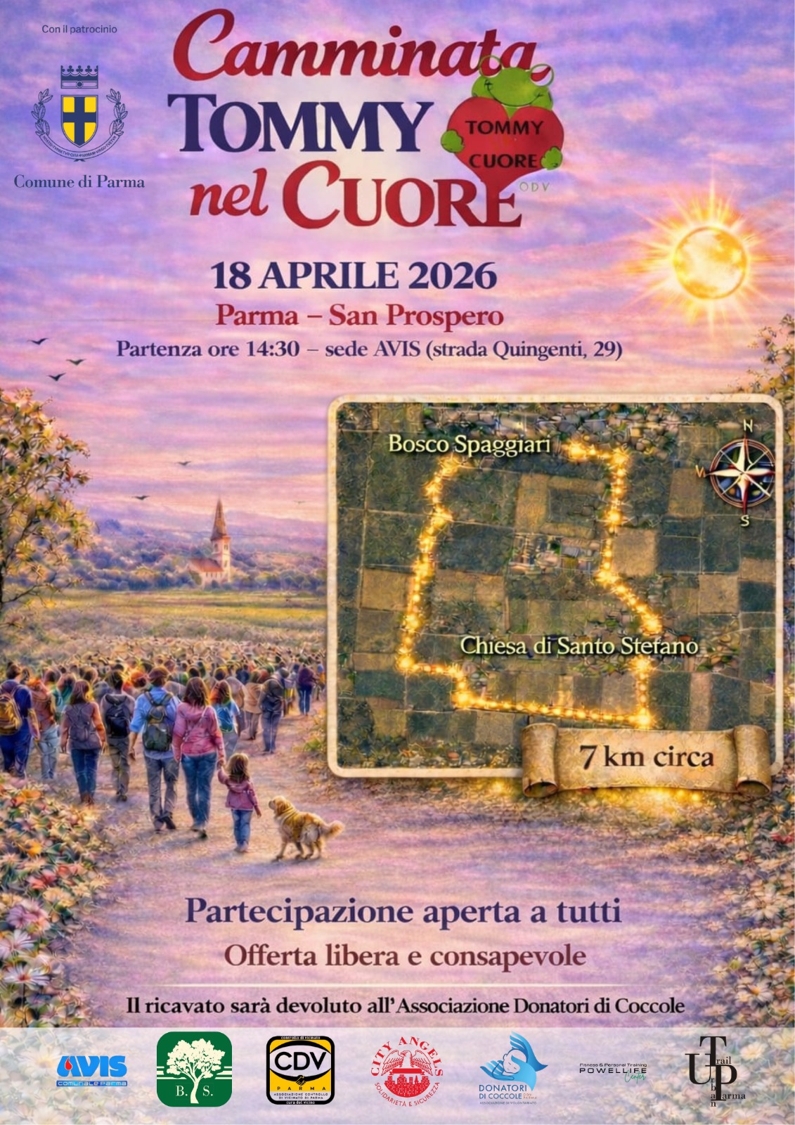 Una camminata semplice, libera e accogliente, un invito a rallentare, a vivere il quartiere con occhi nuovi. Un pomeriggio dedicato alla natura, alla gentilezza e alla solidarietà, dove ogni passo diventa un gesto di comunità. Sabato 18 aprile, con partenza alle ore 14:30 dalla sede AVIS di San Prospero, l’Associazione Tommy nel Cuore ODV organizza una camminata libera e aperta a tutti, un pomeriggio pensato per famiglie, bambini, adulti e per chiunque desideri vivere un’esperienza semplice e autentica, immersa nella natura e nel calore della comunità.
