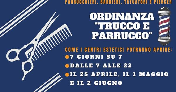 Oltre a parrucchieri e barbieri, l’ordinanza si rivolge anche ai titolari di attività in cui si effettuano tatuaggi e piercing. I centri estetici non hanno invece bisogno di questo provvedimento, già oggi possono lavorare sette giorni su sette.
