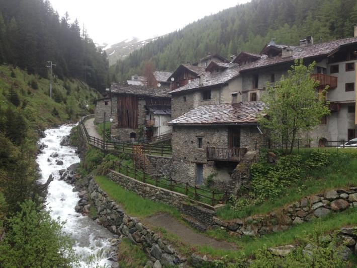 Il sentiero scende nei boschi tra roccia e prati, con ampi panorami verso valle, e attraversando antichi borghi: St Remy, St Leonard, St Oyen Entrobles. Ci fermiamo per la notte all'ostello di Echevennoz, dopo aver percorso 26km di pura fatica. Ci vuole un fisico bestiale .... E domani andiamo ad Aosta.