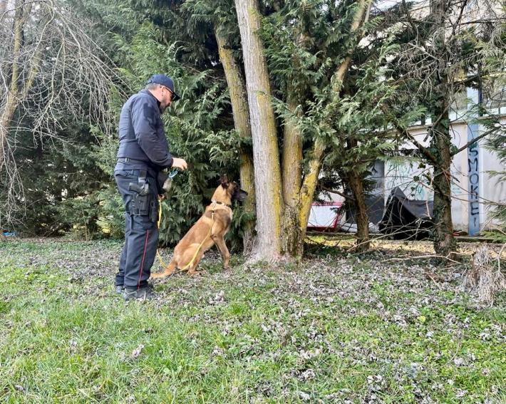 Controlli dei carabinieri nel parco “Luce” di Fidenza: il cane antidroga del Nucleo Carabinieri Cinofili di Bologna ha trovato un panetto di oltre 50 grammi di hashish, nascosto nel tronco di un albero. La droga è stata sequestrata.