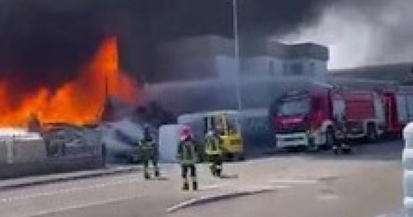 Un'altra sequenza dell'incendio di Fidenza che fa venire i brividi. Le fiamme stanno avvolgendo e consumando il capannone della Monteplast. Un magazziniere sta cercando, con il muletto, di salvare il salvabile tra le fiamme. Materiale in plastica accatastato che sta per essere distrutto dalle fiamme. Un'azione pericolosa. Attorno a lui i vigili del fuoco stanno lavorando. Improvvisamente la parete si stacca e per pochi metri, nella caduta, lo sfiora.