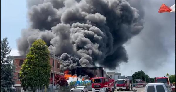 Un grosso incendio è divampato nel primo pomeriggio a Fidenza: nel video, l'intervento dei vigili del fuoco e il crollo di una parte del capannone.