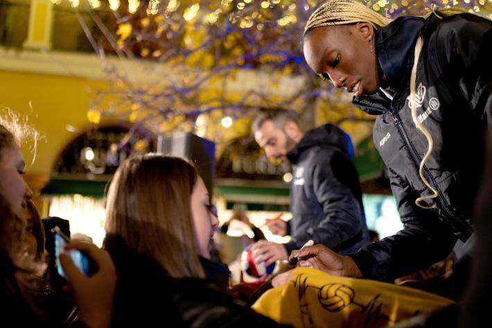 Un bagno di folla a Fidenza per la stella della pallavolo mondiale Paola Egonu e per le altre giocatrici e gli altri giocatori - tra cui l’azzurro Gianluca Galassi - del Vero Volley Milano di serie A1. Nella delegazione ospite del Fidenza Village, partner del Vero Volley, anche il coach della squadra femminile Marco Gaspari. Acclamatissima dai suoi fans, la Egonu si è concessa volentieri a selfie e autografi.