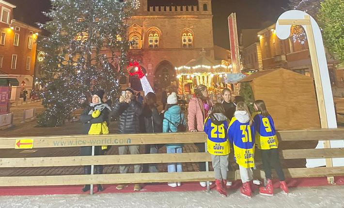 Gufi e gufette, pattini ai piedi, hanno trascorso un bellissimo momento sulla pista di pattinaggio sul ghiaccio di piazza Garibaldi, addobbata a festa, in un turbinio di luci e colori. Una tradizione questa che si rinnova ogni anno, nel periodo natalizio. Tanti bambini e ragazzi della associazione Gufiparma.it non solo hockey in line,