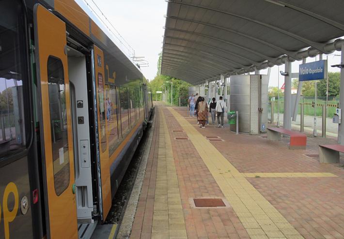 Se una persona da Parma deve andare all’ospedale di Vaio, volendo può anche utilizzare il treno e scendere alla fermata di «Vaio Ospedale» senza dover cambiare a Fidenza. Il viaggio dura 16 o 18 minuti, a seconda dei treni. Nel corso della giornata i convogli diretti sono solamente tre: partenze da Parma alle 12.56, 15.54 e 19.00, con arrivo a Vaio rispettivamente alle 13.12, 16.12 e 19.18. E per il ritorno a Parma? Nessun treno diretto, bisogna cambiare a Fidenza. E la durata del viaggio aumenta di diversi minuti, da pochi a molti a seconda di quanto tempo dopo arriva il treno regionale o regionale veloce proveniente da Milano o da Piacenza. «Vaio Ospedale» non è una vera e propria stazione ma è definita tecnicamente una «fermata» della linea Fidenza-Salsomaggiore Terme. Su questa linea non c’erano fermate intermedie e «Vaio Ospedale» è stata realizzata nel 2008 proprio al servizio della struttura sanitaria inaugurata nel 2004. Nell’arco della giornata, dalle 6 a alle 20 ci sono 24 treni tra Fidenza e Salsomaggiore, in entrambe le direzioni, e non tutti fermano a Vaio. Nei giorni festivi diversi convogli non si effettuano.