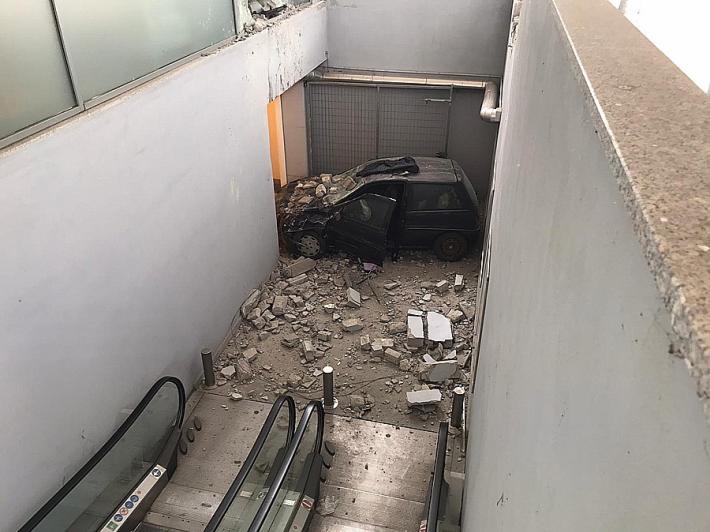 Spaventoso incidente nel primo pomeriggio a Riccò, il conducente di un'auto, una 82enne, ha perso il controllo della vettura che, dopo aver sfondato il parapetto, è finita giù dalla rampa d'ingresso di un supermercato. Le condizoioni della donna, unica ferita nell'incidente,sono di media gra vità.
