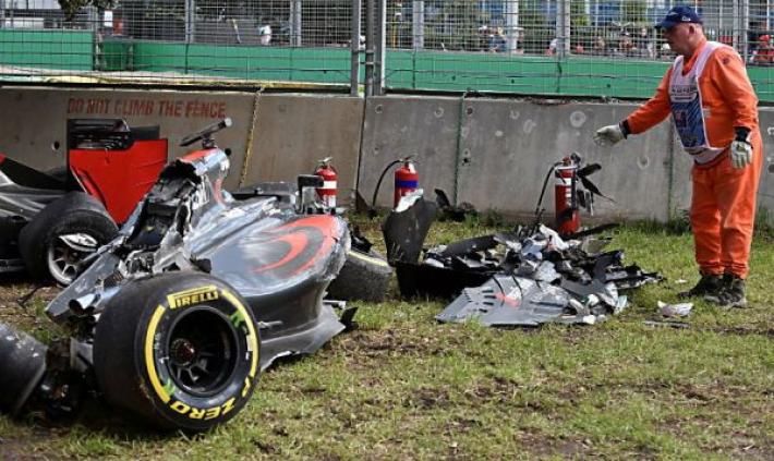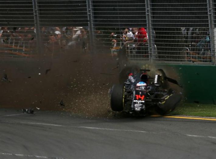 Terribile incidente al giro 18 del Gran Premio d'Australia alla McLaren di Fernando Alonso che sperona la Haas di Gutierrez, finisce fuori strada cappottando e andando in pezzi.