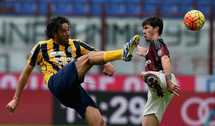 Sotto una pioggia di fischi il Milan non va oltre l’1-1 a San Siro con il Verona ultimo in classifica. Cartellino rosso per Nigel De Jong che causa il rigore realizzato da Luca Toni. Un episodio che decide la partita e vanifica la rete realizzata da Bacca ad inizio ripresa. Ennesimo passo falso dei rossoneri dopo il pari col Carpi, ma Sinisa Mihajlovic a fine partita contesta l'arbitraggio: «Da alcune giornate ci stanno penalizzando. Ci hanno annullato due gol su fuorigioco inesistenti e così non si può andare avanti. C'era anche un rigore netto su Bonaventura». Tuttavia, al di là delle decisioni non sempre lucide di Valeri, la prova del Milan è pessima e con questo passo è difficile pensare di poter centrare il traguardo Champions League chiesto da Adriano Galliani e Barbara Berlusconi. Il presidente non era allo stadio, ma è facile pensare che sia arrabbiato.