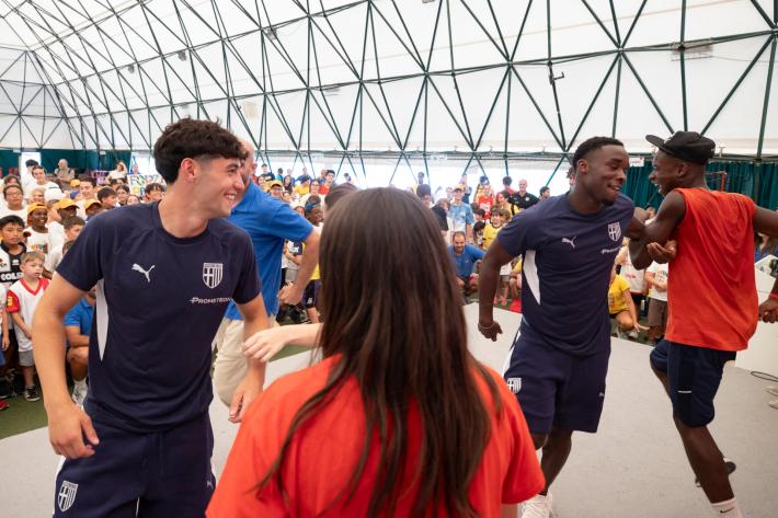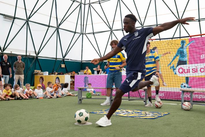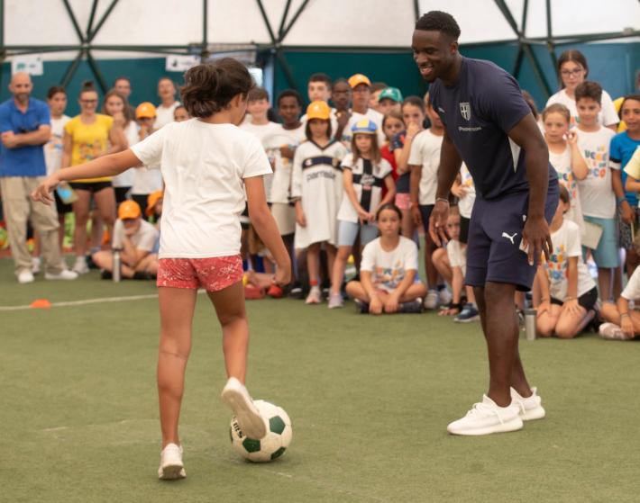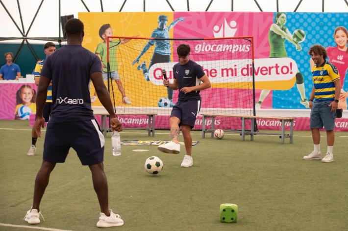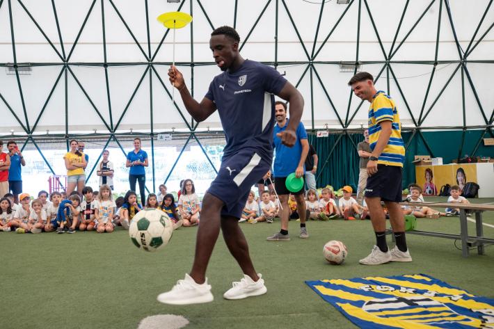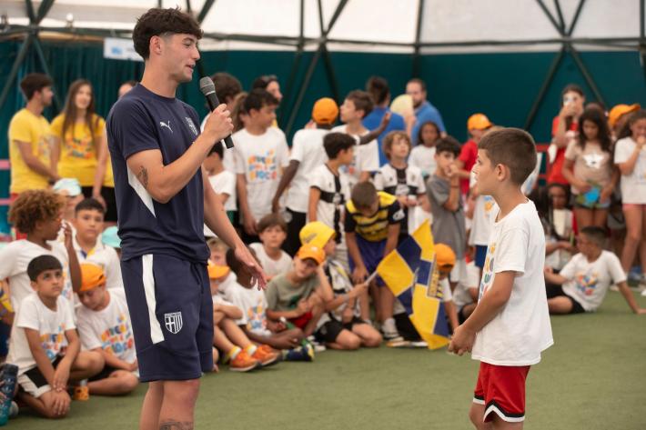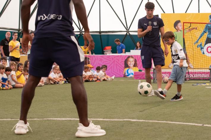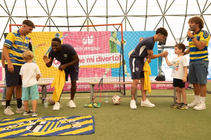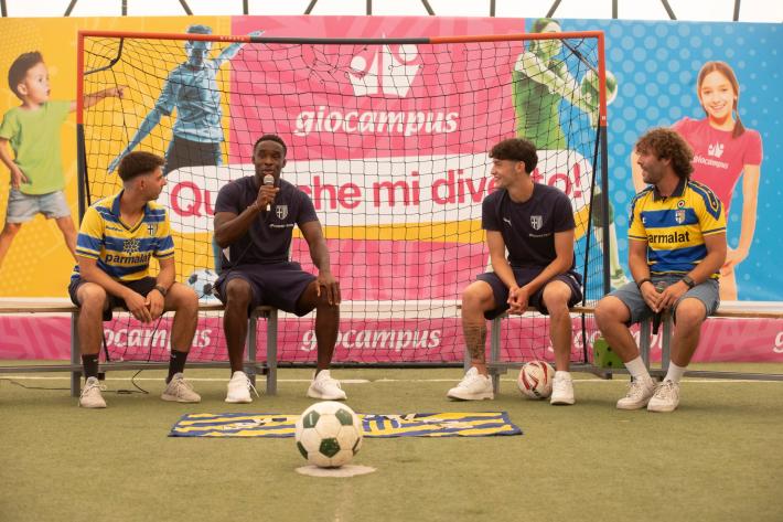 Grande entusiasmo a Giocampus per la presenza di Mandela Keita ed Elia Plicco del Parma Calcio. Un momento che aggiunge un altro importante tassello alla collaborazione tra il Parma Calcio e l’alleanza educativa.