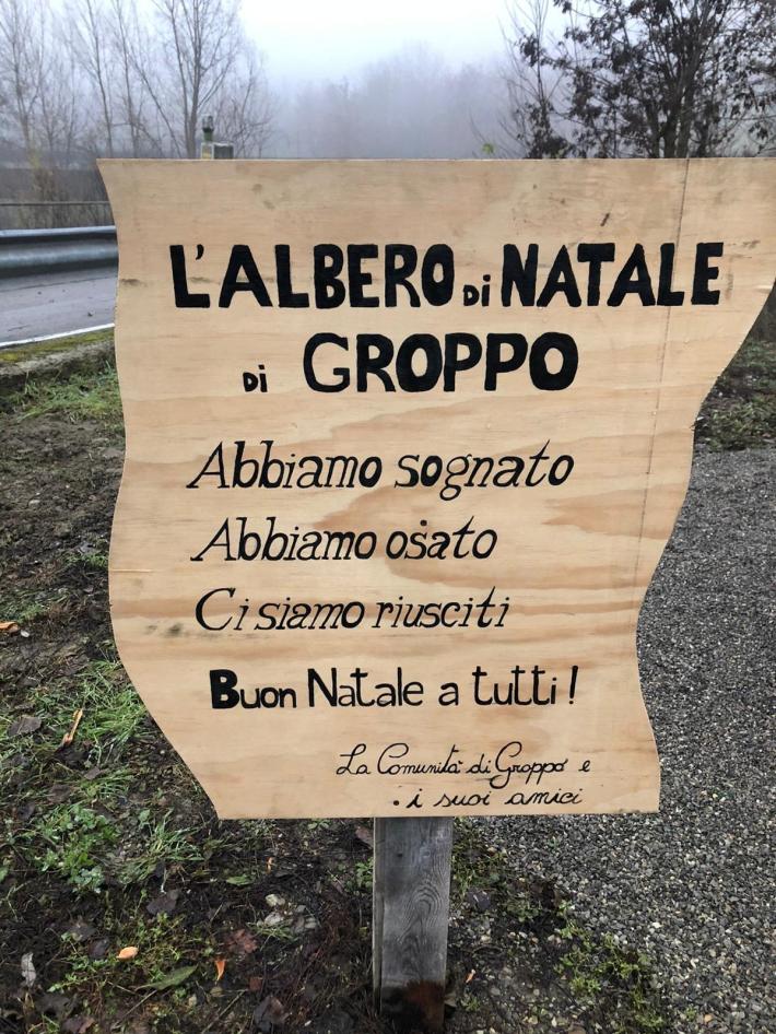 "Abbiamo sognato, abbiamo osato e ci siamo riusciti": è così che su un cartello in legno è raccontata la favola di Natale di Groppo di Tizzano. E' qui che tutta la comunità (and friends) si è messa all'opera con filo e uncinetto e ha realizzato il colorato, caldo, magico albero di Natale che vedete nelle foto, con l'augurio a chi è di passaggio.