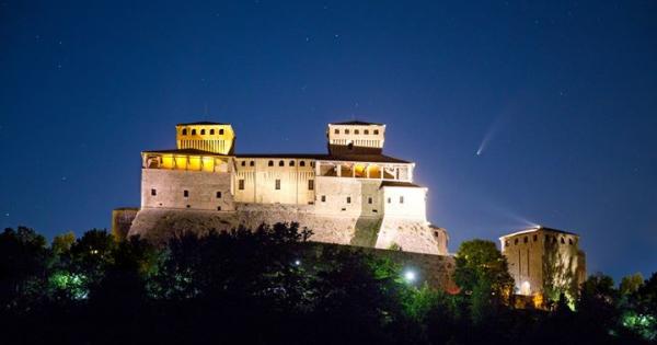 Gli scatti di un lettore, il fotografo, Riccardo Pulieri, che ieri a Torrechiara ha immortalato il passaggio della cometa C/2020 F3 (Neowise) sopra la castello di Pier Maria Rossi.