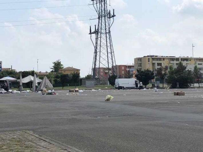 Immondizia che vola ovunque dopo il mercato di via Traversetolo. Il vento ha comportato questi effetti visto che non è stata fatta la pulizia.