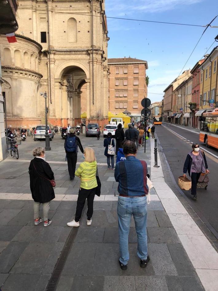 Da piazzale Corridoni a via Imbriani: una lunghissima coda di buon mattino per fare spesa al mercato contadino. E per il secondo sabato consecutivo, racconta il lettore che ha inviato le foto, scattate in via D'Azeglio alle 7.30.