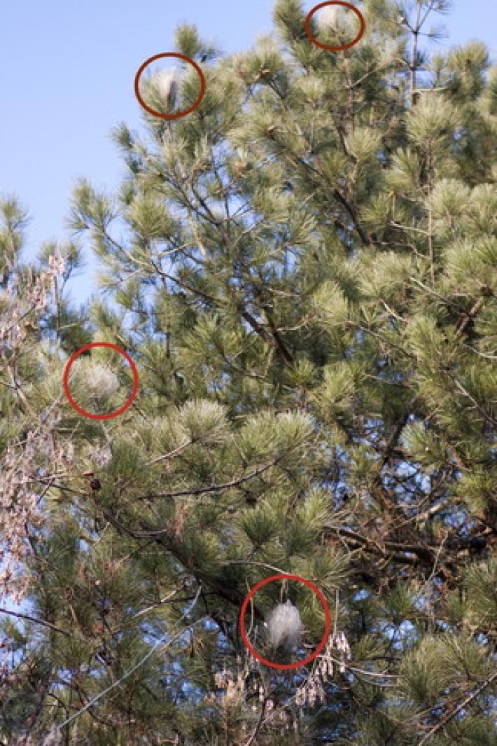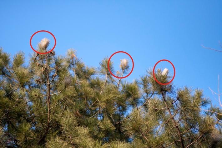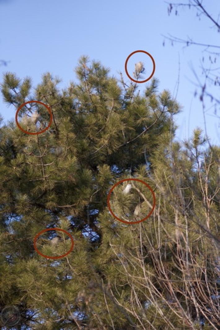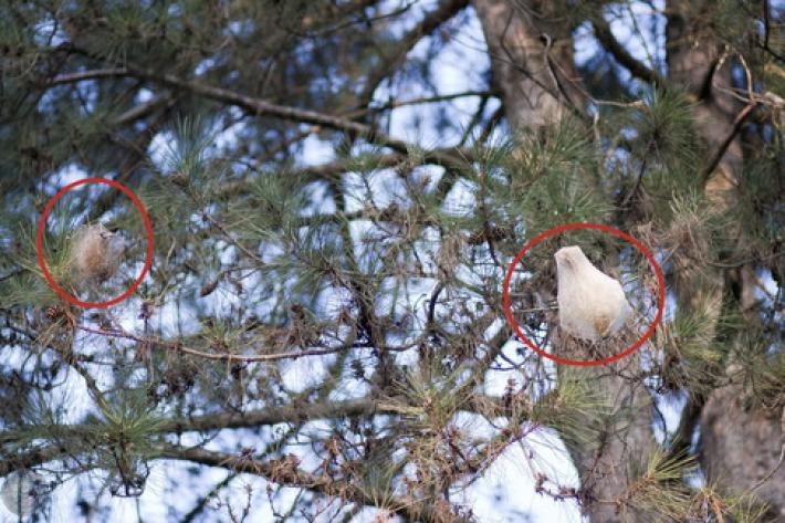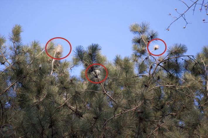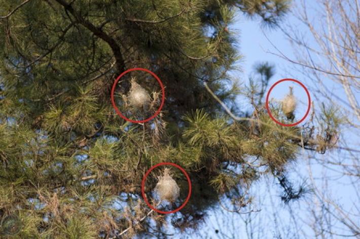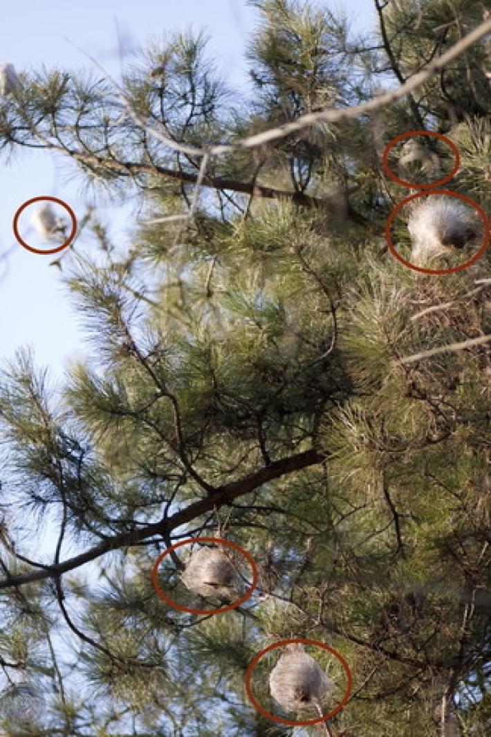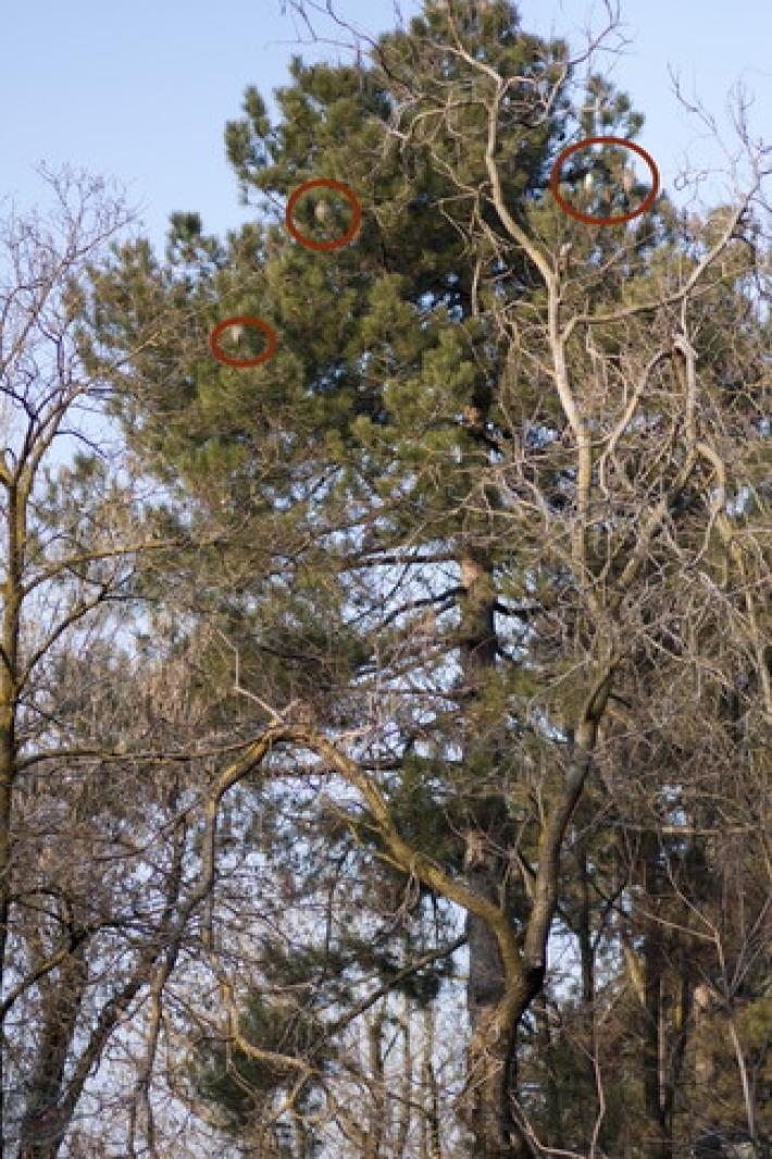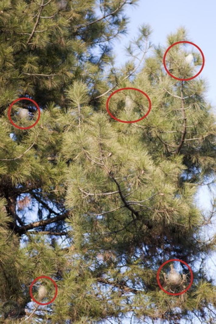 Cerchiate con precisione dal nostro gazzareporter, lo stesso Maurizio Ferrarini ci invia alcune foto scattate in piazza Sacco e Vanzetti a Baganzola per segnalare la presenza di nidi di processionarie: "Essendo il piazzale dotato di un area giochi per bambini - scrive - credo sarebbe il caso di eliminare il pericolo prima che i bozzoli si schiudano".