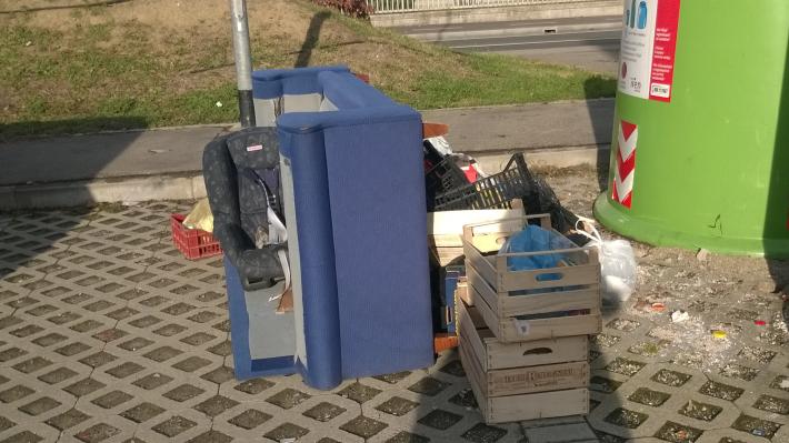 Noi condomini dei numeri civici 1 e 3 abbiamo numerose volte denunciato e protestato presso Iren e presso l'assessorato all'ambiente e c'è chi ha affisso il cortese (anche troppo, direi) cartello che allego in foto. Il solo risultato ottenuto fino adesso è la periodica rimozione del lordume. Rimozione alla quale fa immediatamente seguito un ulteriore deposito di rifiuti vari: divani, bidet, elettrodomestici, giocattoli, anche cartone e plastica che potrebbero essere benissimo smaltiti con la raccolta porta a porta. La tempestività di questa gente è impressionante, vien quasi da pensare che aspettino dietro i vetri la pulizia per rimpiazzare immediatamente.