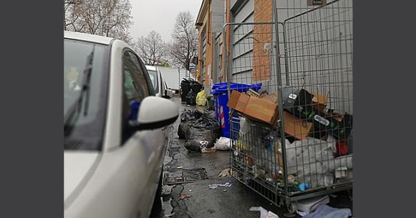 Il marciapiede di via Zara occupato dai rifiuti del bingo