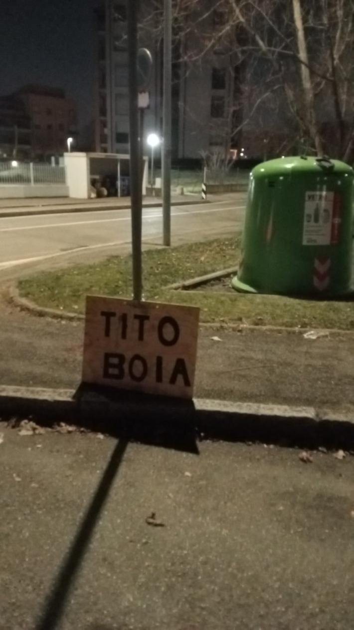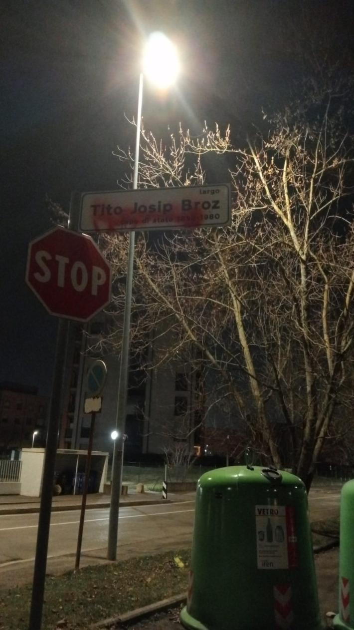 La targa della strada imbrattata, ai piedi un cartello con un insulto. Ecco come appare la segnaletica di largo Tito Broz. Siamo nella zona a sud ovest di Parma, a ridosso di via Budellungo. Ieri, 10 febbraio, era il Giorno del ricordo: solennità civile nazionale italiana che ricorda i massacri delle foibe e l'esodo giuliano dalmata.