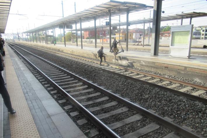 Nella confusione che regnava ai binari oggi alle 18.30, va segnalato anche che in pochi minuti diversi ragazzi hanno attraversato i binari 3 e 4, un ragazzo addirittura sollevando un monopattino. Un altro ragazzo si è «meritato» una strombazzata dell’Eurocity Bologna-Zurigo perché ha attraversato i binari quando stava arrivando il treno.