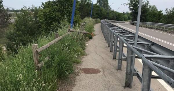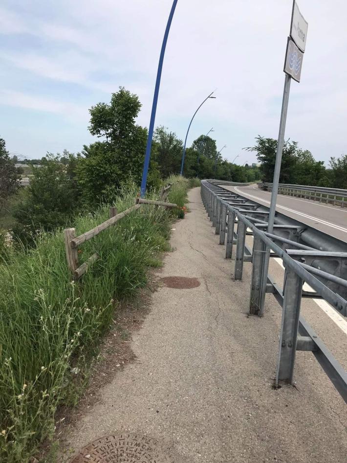 Il lettore Massimo segnala "le condizioni del marciapiede sul ponte della complanare: recinzione in sfacelo, chiodi sporgenti, erbacce e rovi che ormai occupano tutto lo spazio". Ma fotografa anche "l'imbocco della pista ciclabile di via Reggio per l'argine".